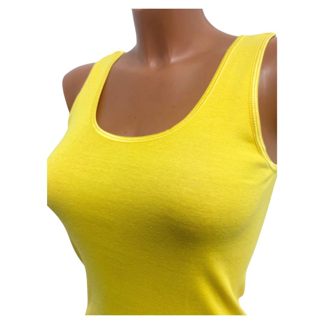 2 Pack Top kwaliteit dames hemd – 100% katoen – Geel . Dames regular hemd. Materiaal bestaat uit 100% katoen, hierdoor is het onderhemd vocht absorberend. Deze tanktop is ideaal voor tijdens warme zomerdagen, voor dagelijks gebruik. Het hemd heeft een comfortabele pasvorm, zit lekker aan de lijf en blijft goed na het wassen vinden de meeste klanten. Ook rekken ze mee in de breete tot 10 cm meer en zijn slim fit. Dit hemd heeft geen zijnaden waardoor het hemd zeer comfortabel voelt. Deze dameshemd heeft brede bandjes waardoor het lekker zit aan de schouders. Ze zijn verkrijgbaar in diverse maten en 11 kleuren. Deze tanktop worden geleverd in een pack van 2 stuks.